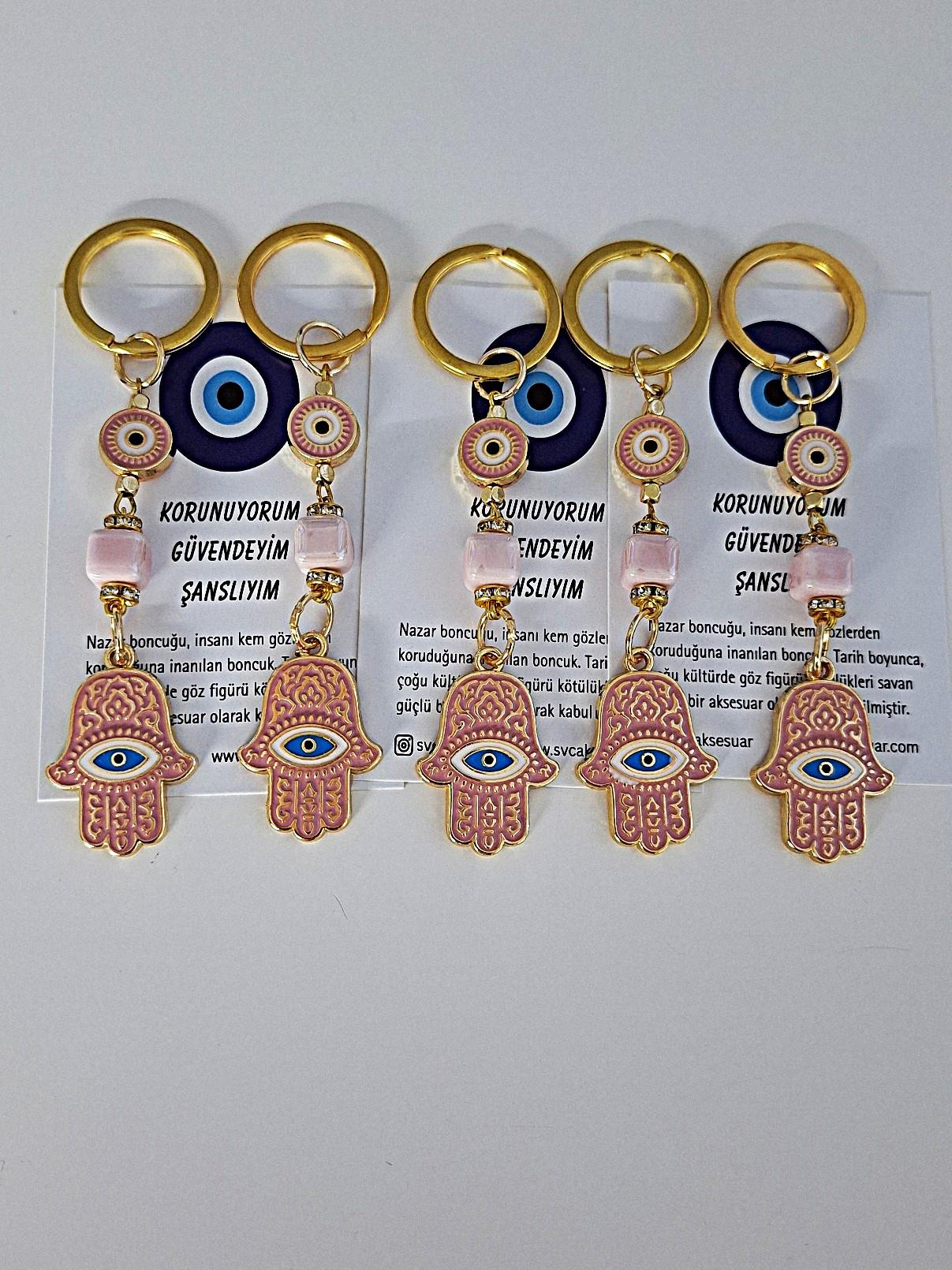 Anlamlı Hediyelik 5'li Fatma Ana Eli & Hamse Göz Anahtarlık - Pembe 10 cm