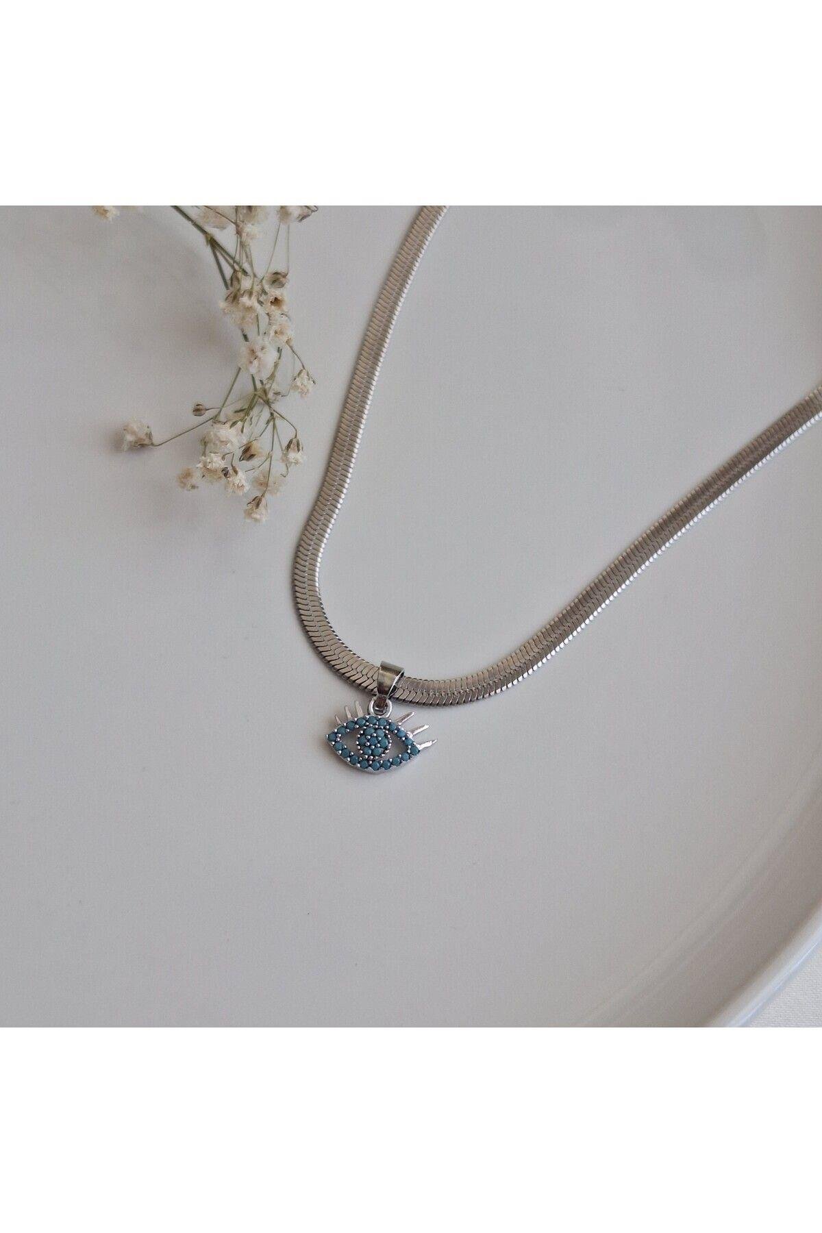 - Dayanıklı çelik materyal kullanılarak üretilmiş, uzun ömürlü bir aksesuar deneyimi sunar; - Klasik kesim tasarımı ile her türlü kıyafetle kolayca uyum sağlar ve şıklığınızı tamamlar; - Çelik göz charm kolye, günlük kullanım için idealdir ve her ortamda rahatlıkla tercih edilebilir;