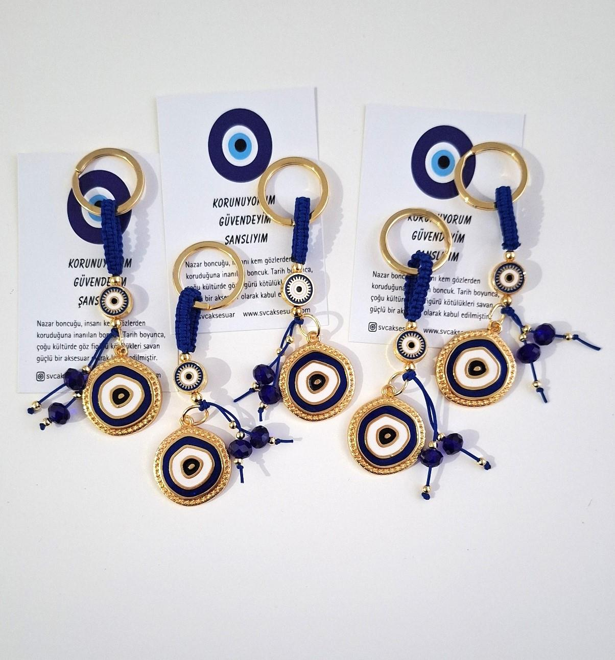 Hediyelik 5'li Nazar Boncuklu Modern Anahtarlık - Lacivert 10,5 cm