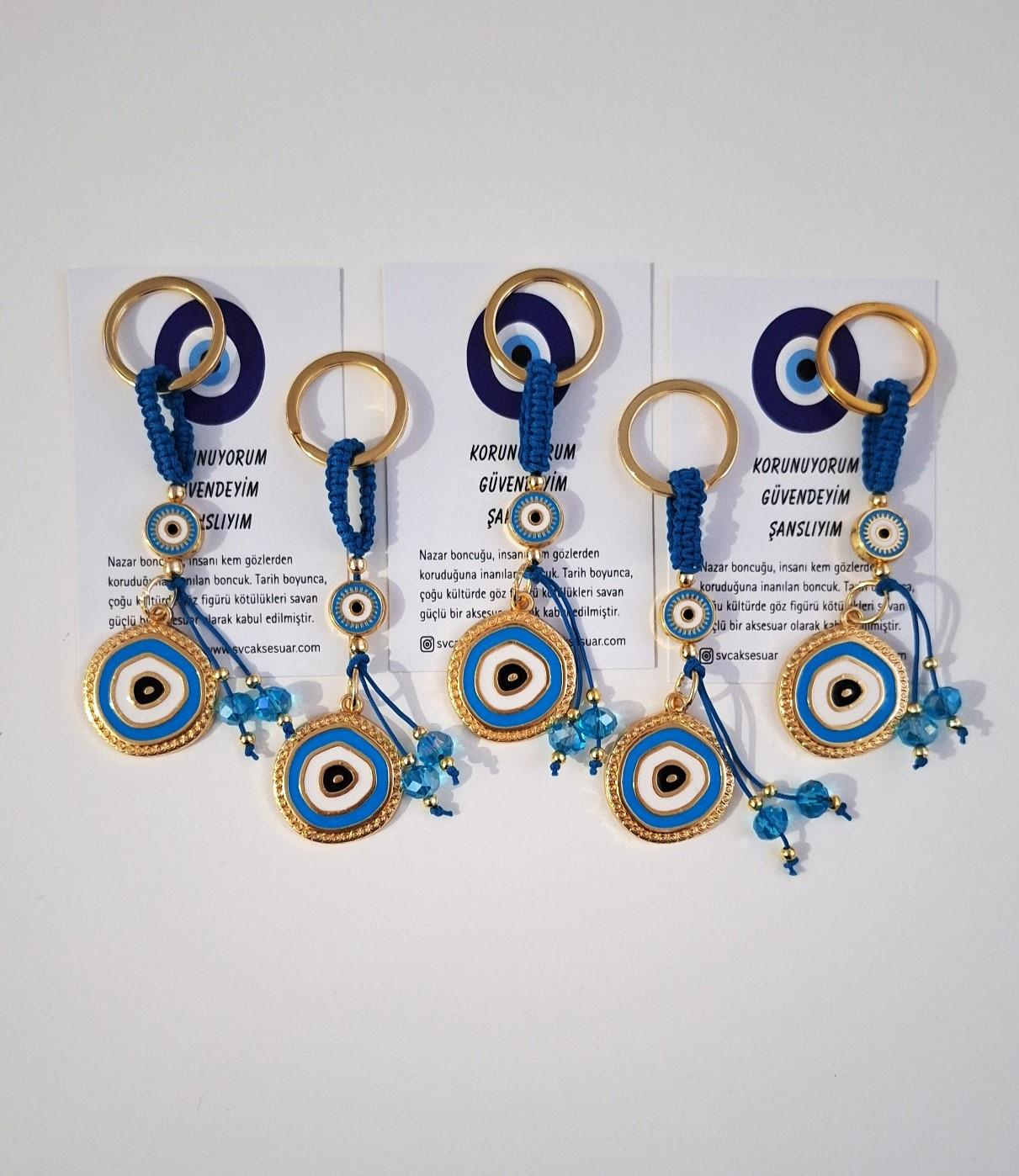Hediyelik 5'li Nazar Boncuklu Modern Anahtarlık - Mavi 10,5 cm