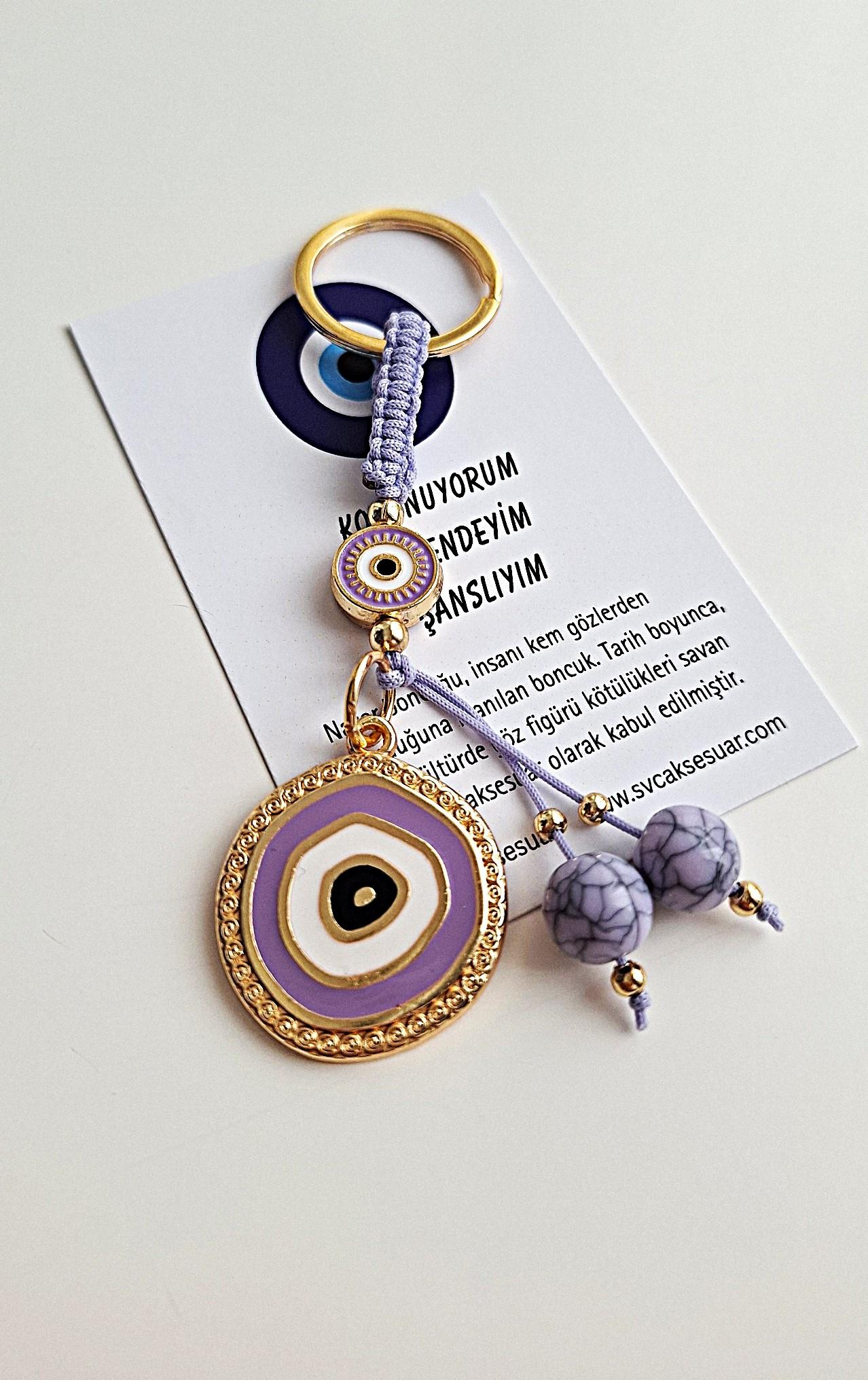 Hediyelik Nazar Boncuklu Modern Anahtarlık - Mor 10,5 cm
