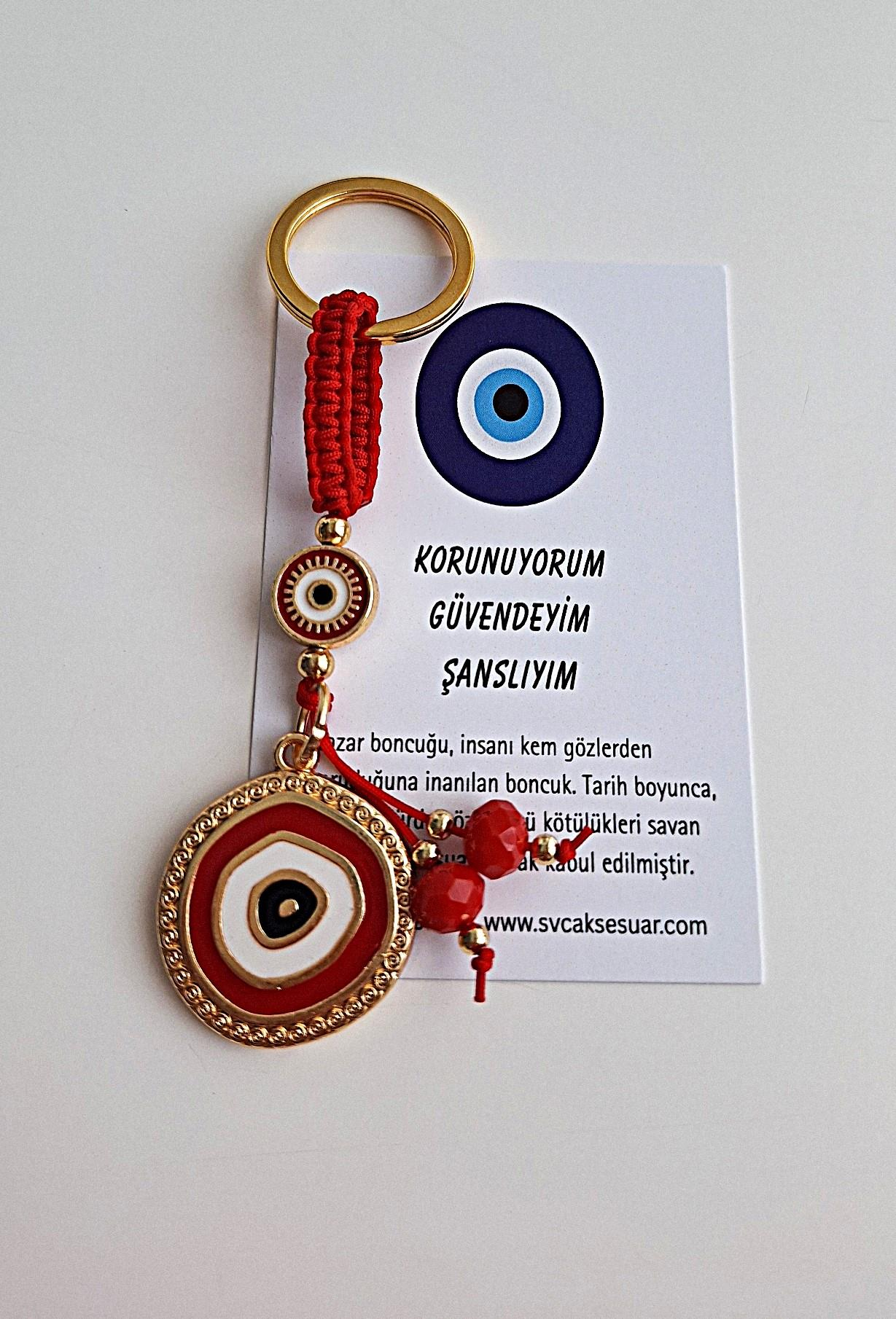 Hediyelik Nazar Boncuklu Modern Anahtarlık - Kırmızı 10,5 cm