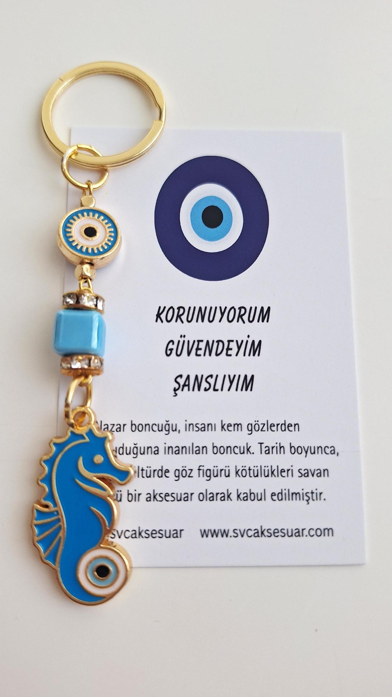 Hediyelik Nazar Boncuklu Şans Denzatı Anahtarlık - Mavi 10,5 cm