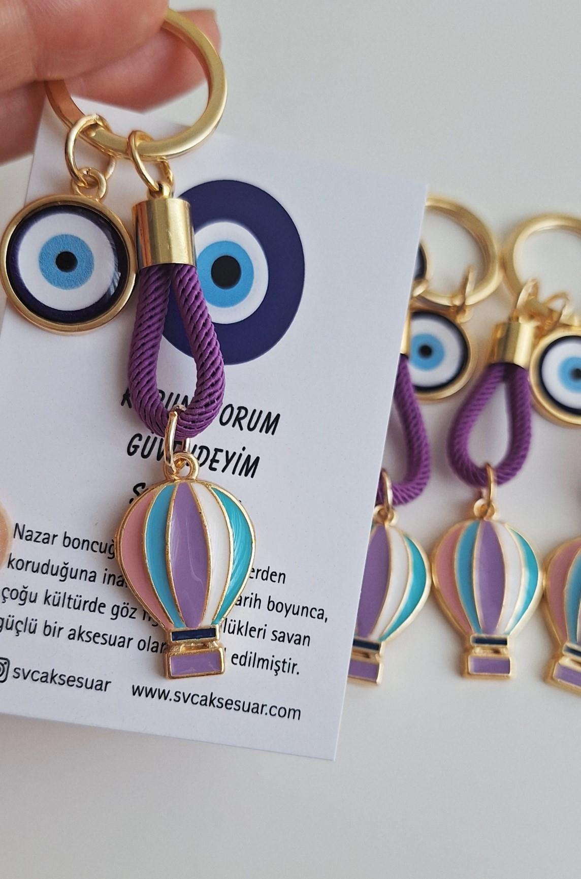 Hediyelik Özgürlük Simgesi Balon Anahtarlık - Mor 9cm