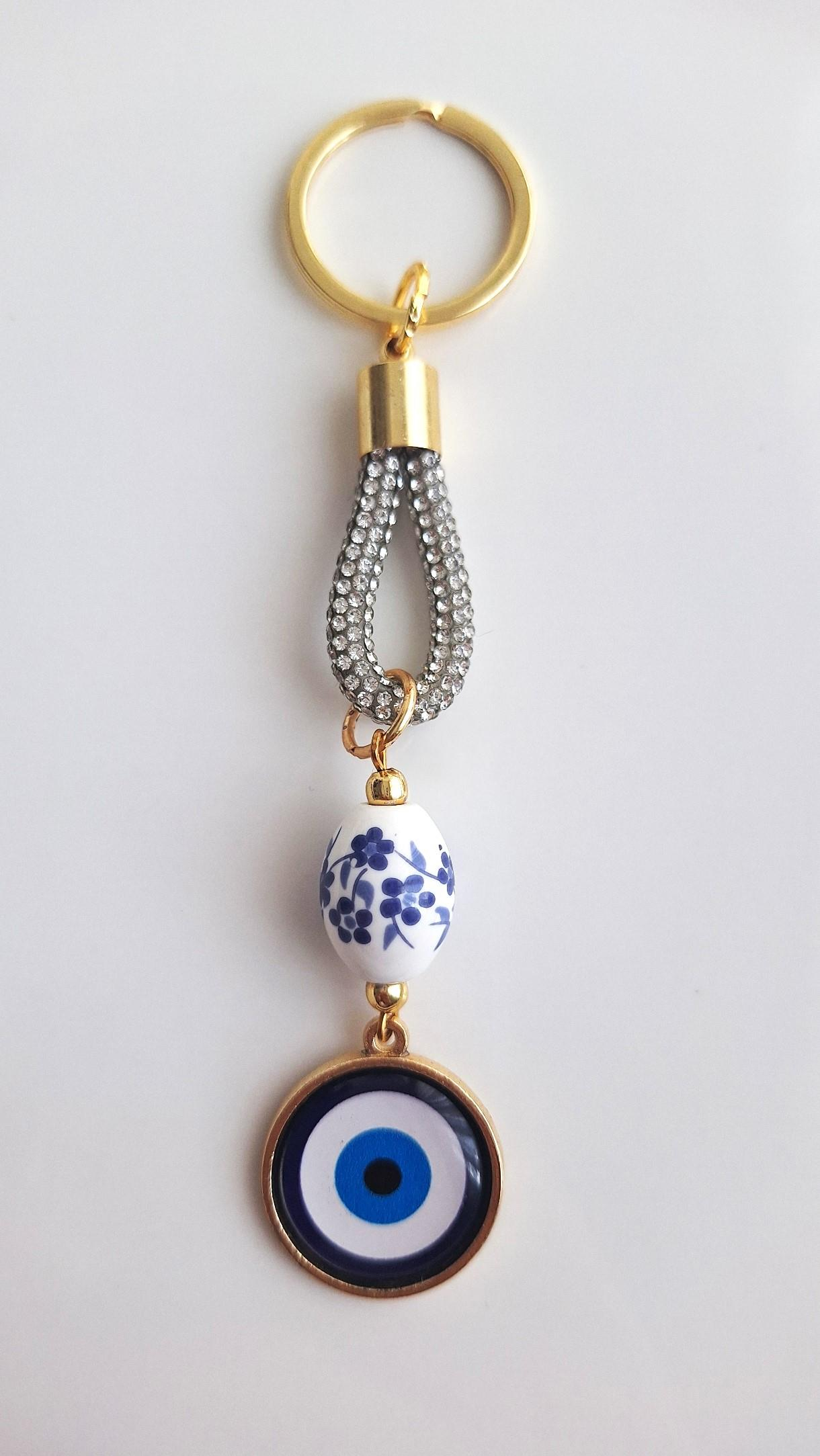 Hediyelik Zirkon Taşlı Nazar Boncuklu Anahtarlık  12 cm