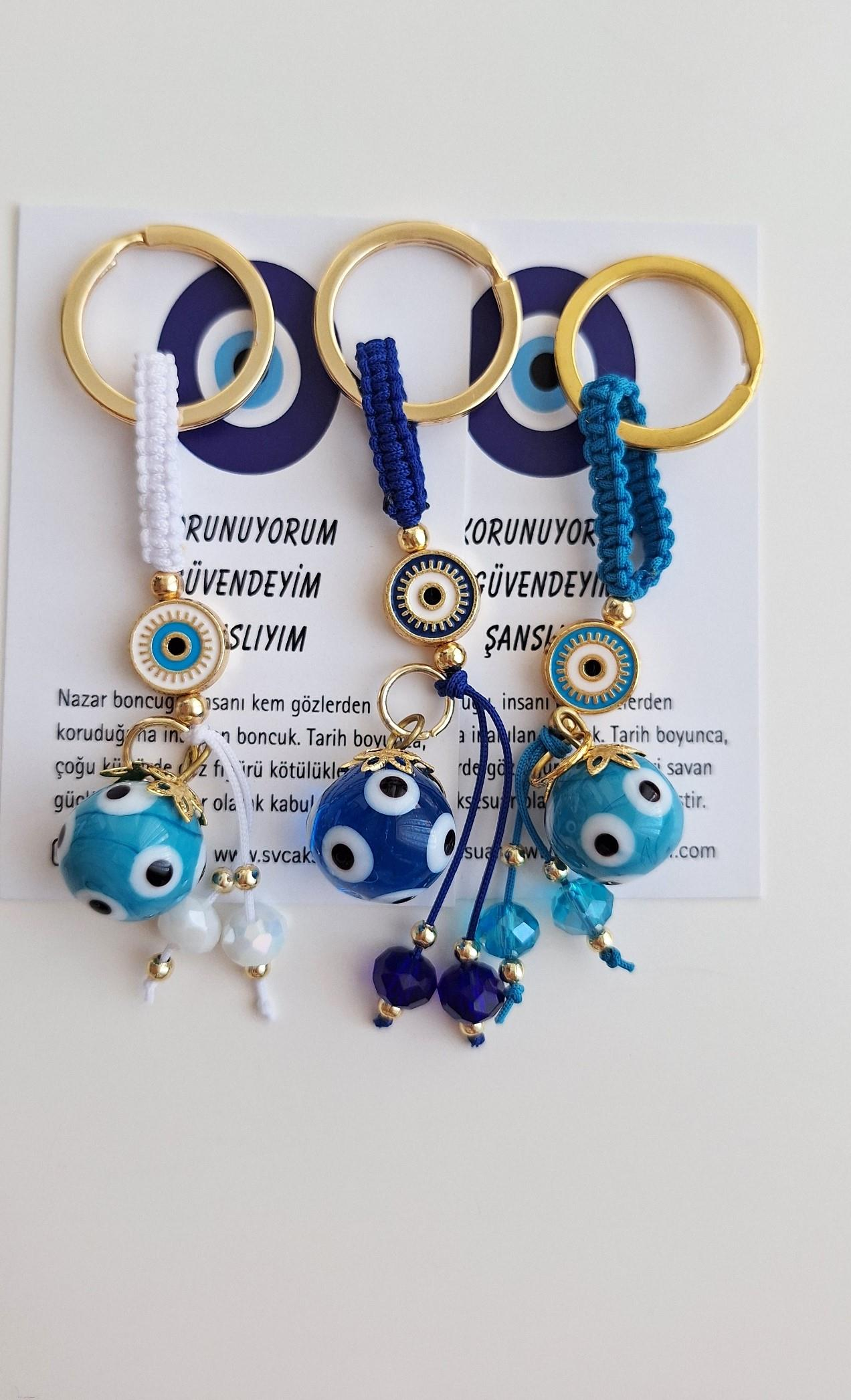 Lüks Hediyelik 3'lü Nazar Boncuklu Şans Anahtarlık 10,5 cm