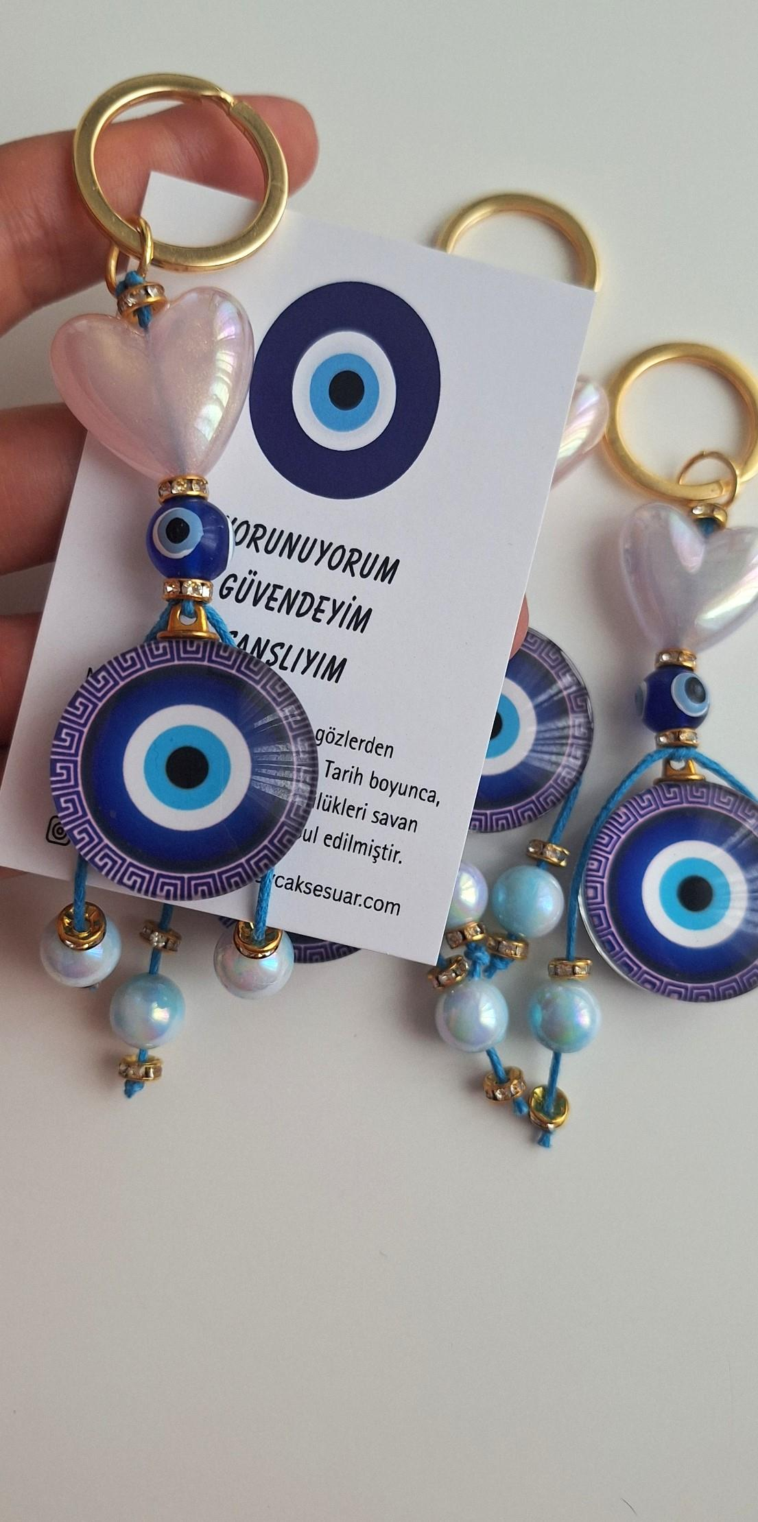 Lüks Hediyelik Kalp Detaylı Nazar Boncuklu Anahtarlık - 11 cm