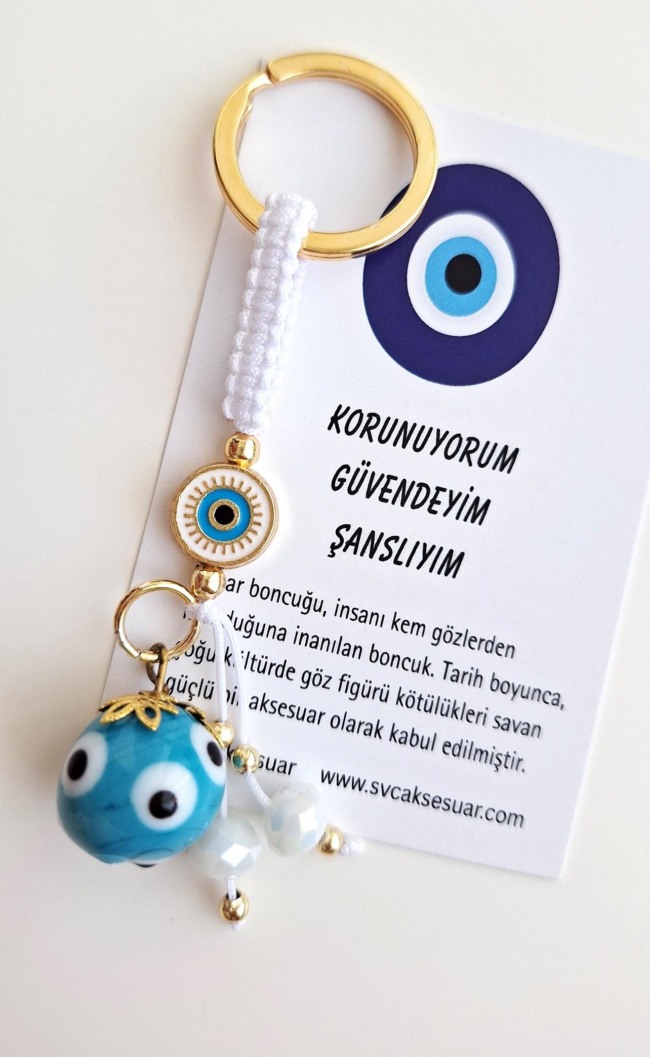 Lüks Hediyelik Nazzar Boncuklu Şans Anahtarlık - Beyaz 10,5 cm