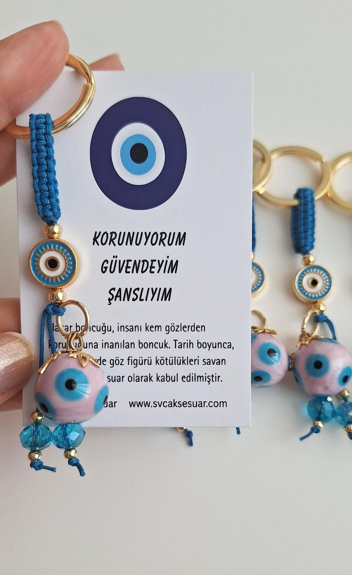 İster kendinize ister sevdiklerinize hediye alabileceğiniz orjinal cam nazar boncuklu şık ve kaliteli bir anahtarlık.