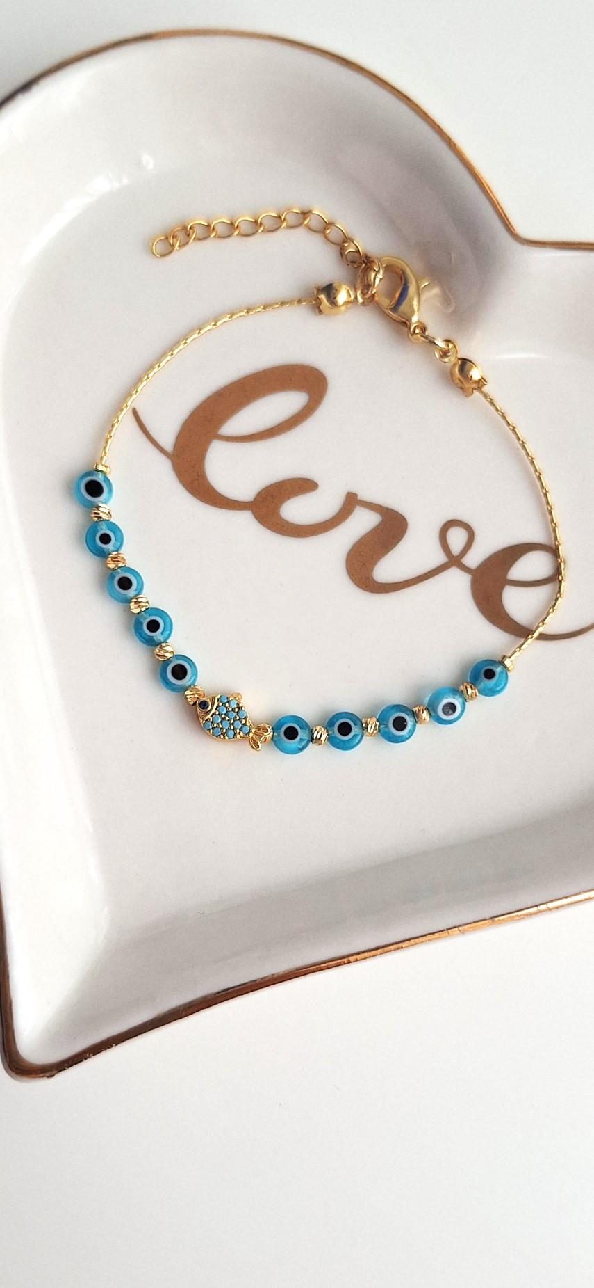 Hediyelik Zirkon Taşlı Şans Balık Detaylı Nazar Boncuklu Bileklik
